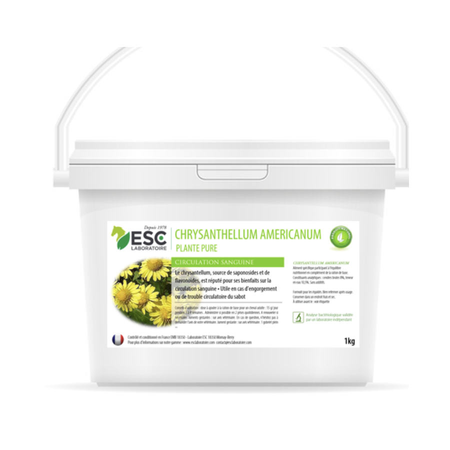 Grâce à sa richesse en flavonoïdes et saponosides le Chrysantellum soutient le système circulatoire au niveau des membres. Il est recommandé en cas d’engorgement ou de troubles circulatoires au niveau du sabot. Cette plante possède également des vertus protectrices au niveau des cellules du foie.
