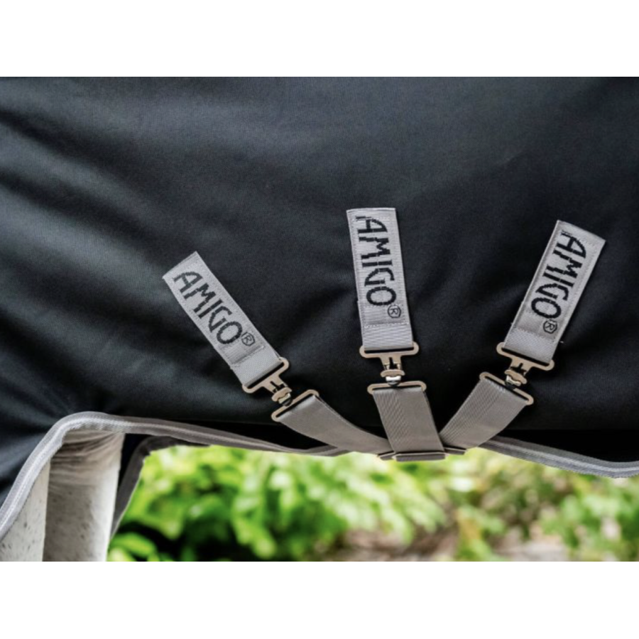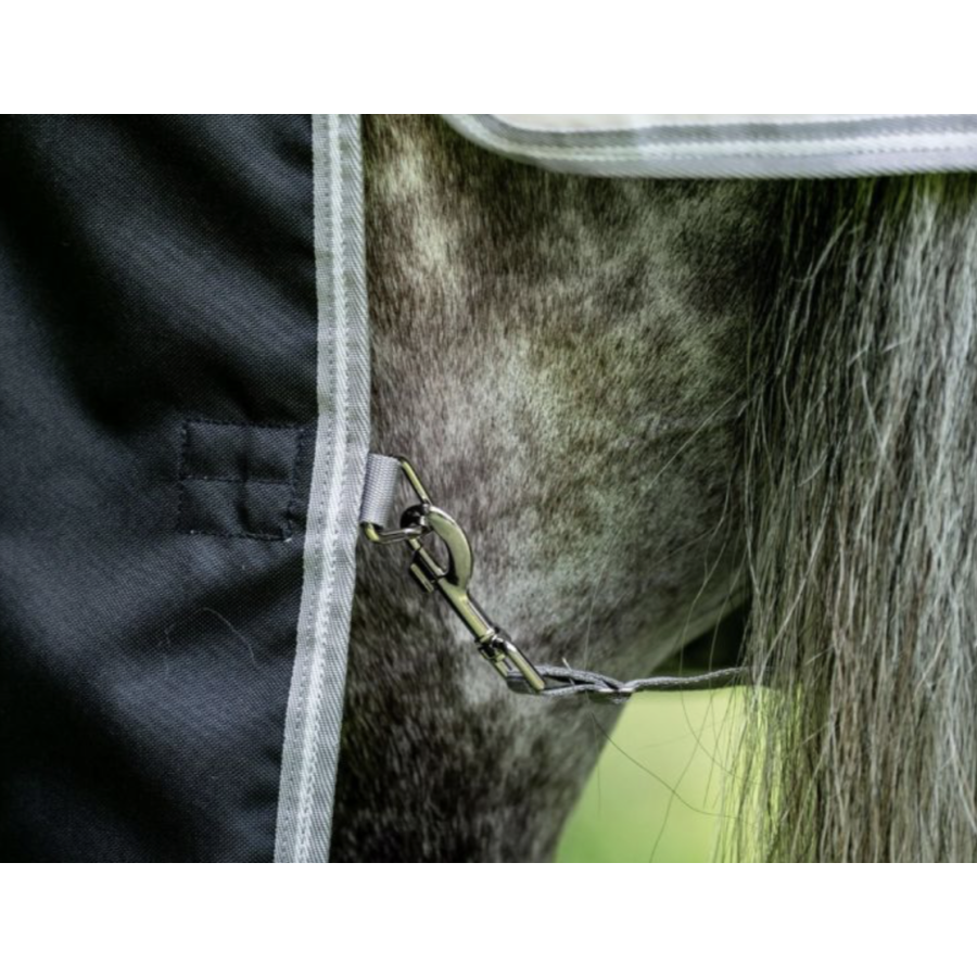 Une couverture confortable grâce à sa fermeture en V et protectrice. Différents grammages sont disponibles pour adapter la couverture aux conditions climatiques ainsi qu'à votre cheval