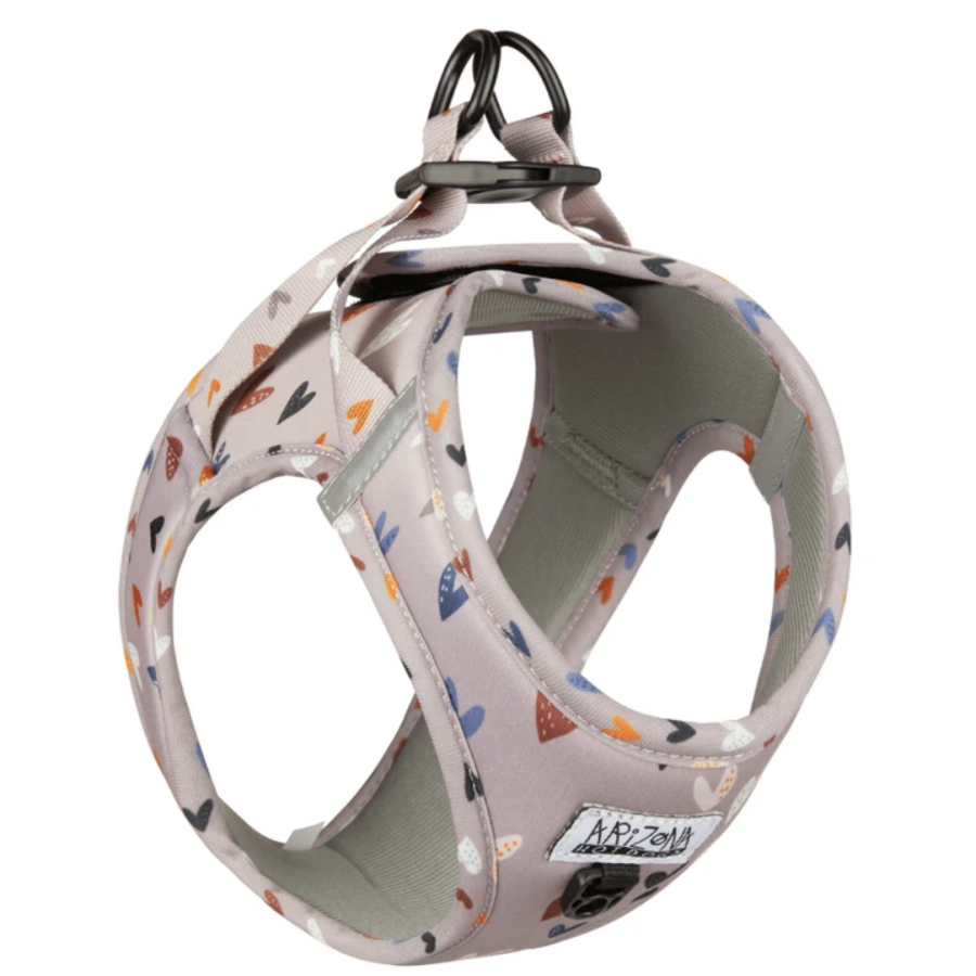 Harnais Sweet Love ajustable couleur taupe avec petits cœurs.