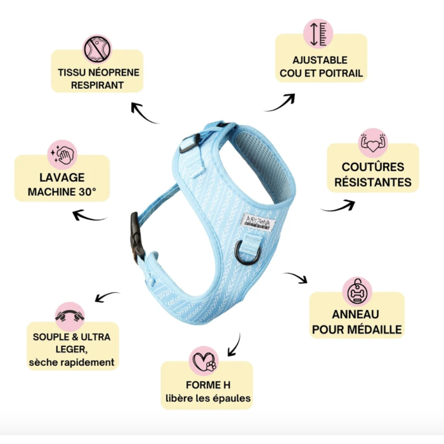Harnais Bubble Gum ajustable pour chien et chat couleur bleu ciel..
