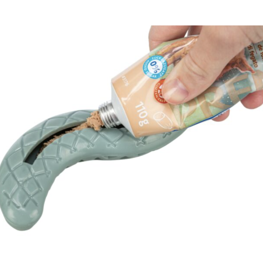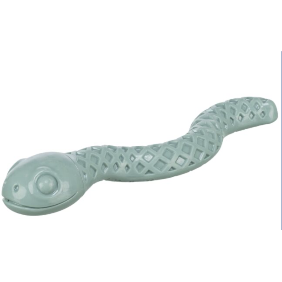 Snack snake en TPR d'une longueur de 27 cm pouvant accueillir toutes sortes de friandises pour occuper votre chien pendant de longues heures