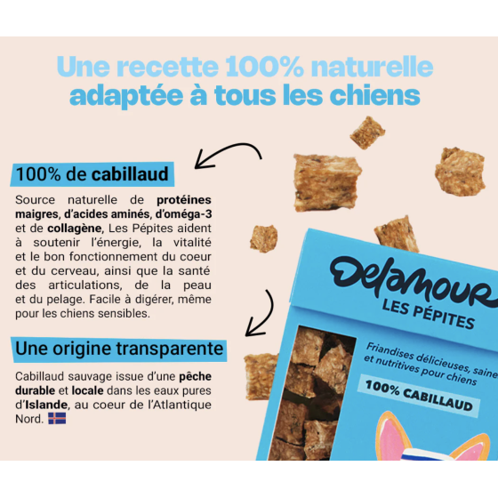 Parfumé à la truite et aux algues, ce complément alimentaire pour chien ou chat offre un mélange gourmand et naturel, idéal pour varier les plaisirs sans changer l’alimentation de base. Son goût irrésistible stimule l’appétit des chiens et chats, même les plus difficiles.
